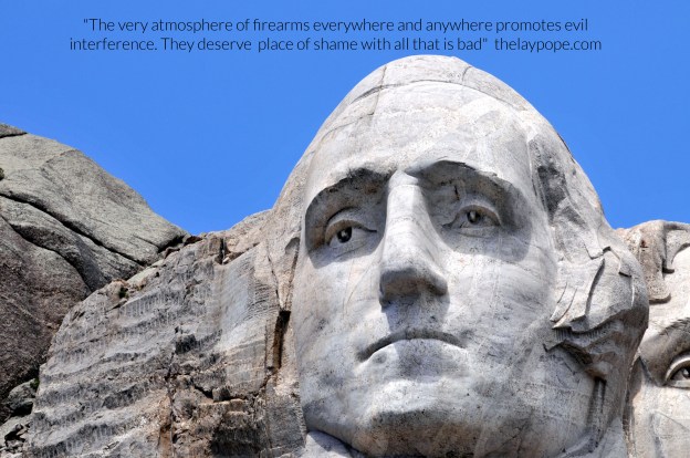 “The facts above prove …” says the Lay Pope… “that the very atmosphere of firearms everywhere and anywhere promotes evil interference. They deserve a place of shame with all that is bad”